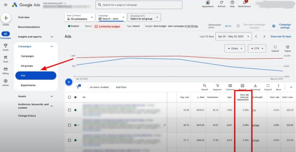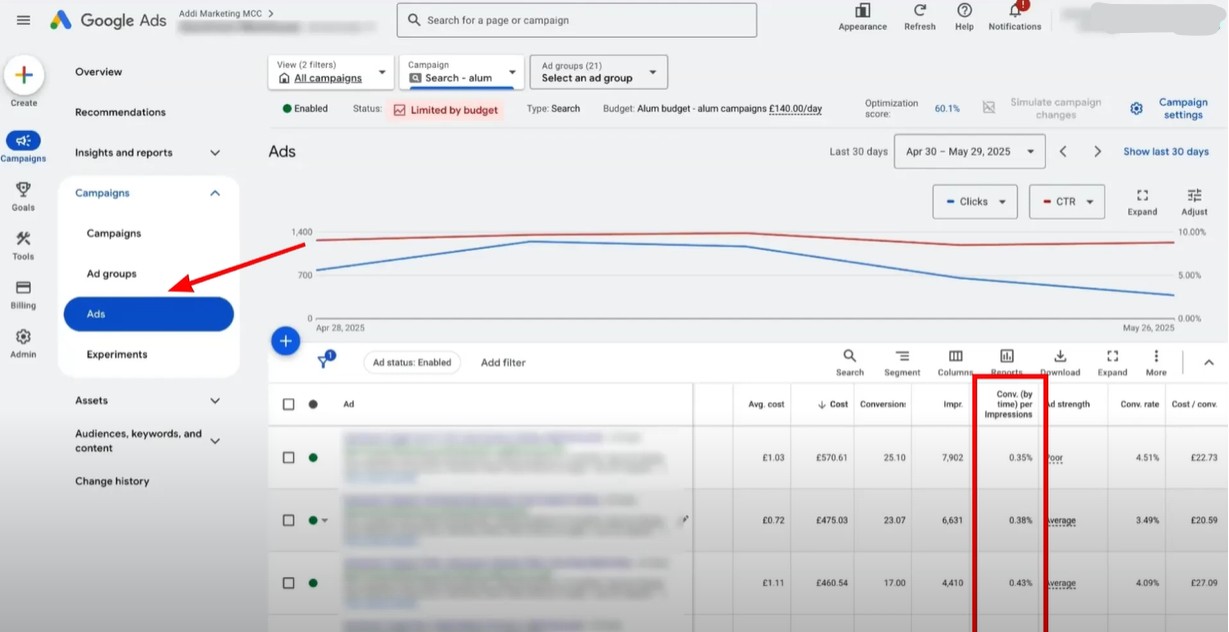 Conversions_by_conv_time / Impressions оцінює, наскільки добре саме оголошення “відпрацьовує” від показу до кінцевої конверсії, тобто його загальну ефективність у всій воронці.