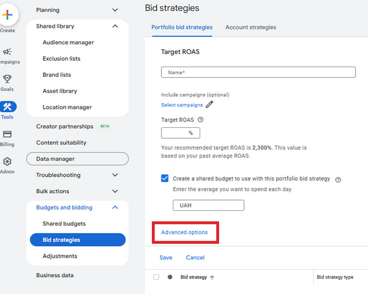 Що б такого не трапилося, на початку використання автоматичних стратегій – можна використовувати advanced налаштування ціни за клік у Portfolio bid strategy.