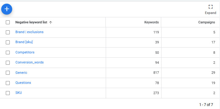 • запити, що вже опрацьовуються іншими кампаніями (щоб динамічні пошукові не конкурували в аукціоні),