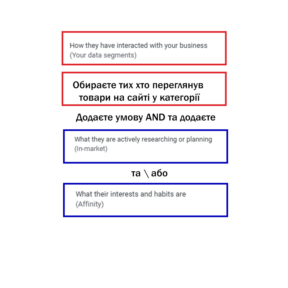 Ідея взагалі яка: ви рекламуєте ваші товари вже не перший місяць. Вже є поділ на тематики категорії. Вже є статистика за конверсійністю в аудиторіях.
