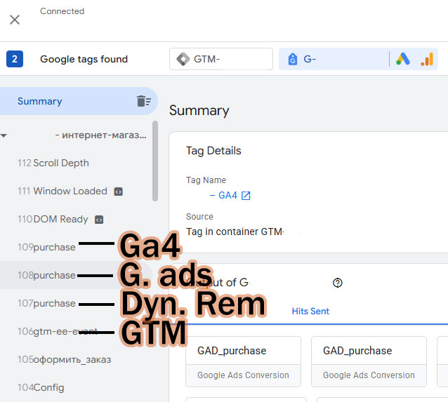 Чи дублює воно події? Ось ,якщо з’єднаю тег мерчанту з рештою під одним гугл тегом, і наприклад залітає купівля, в мене ж зразу у той гугл тег летить: purchase для динамічного ремаркетингу, для ga4, для g_ads