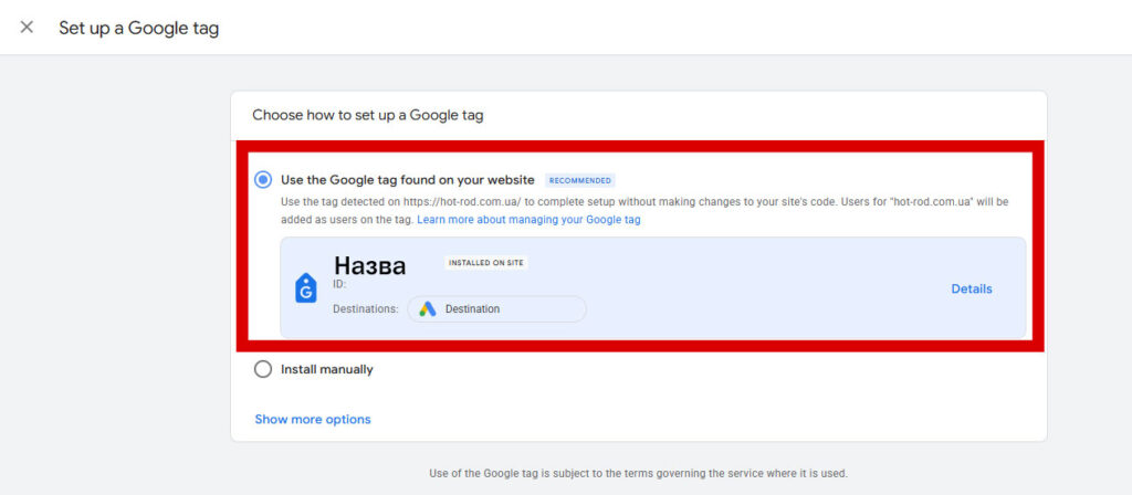 То ж я обрав спосіб максимальне безпечний (install manualy) – встановив окремо гугл тег, через гугл тег менеджер. Окремо вказавши події котрі передавати: